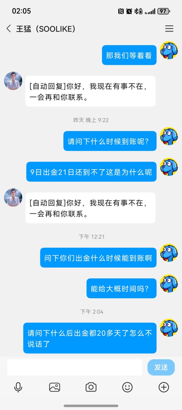不给出金,总是说比较慢,后来就不理我了,这个平台绝对不行,谁用谁上当。
