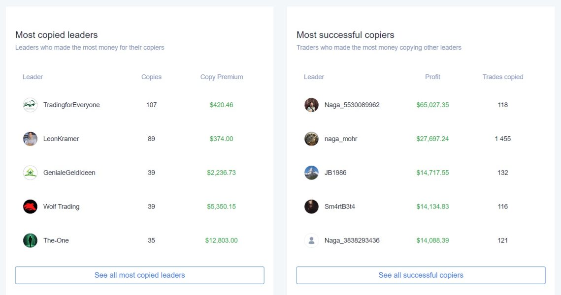 Tanto el panel de control como las operaciones en sí me parecieron muy cómodos. La navegación no deja lugar a dudas. Es muy fácil evaluar el rendimiento de los líderes si quieres dedicarte a la copia de operaciones, porque la clasificación de líderes muestra toda la información que se necesita para tomar una decisión a favor de cualquier líder.