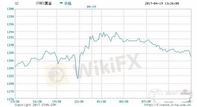 截至4月18日20时,COMEX黄金期货3个月合约价格徘徊在1286.9美元/盎司附近。