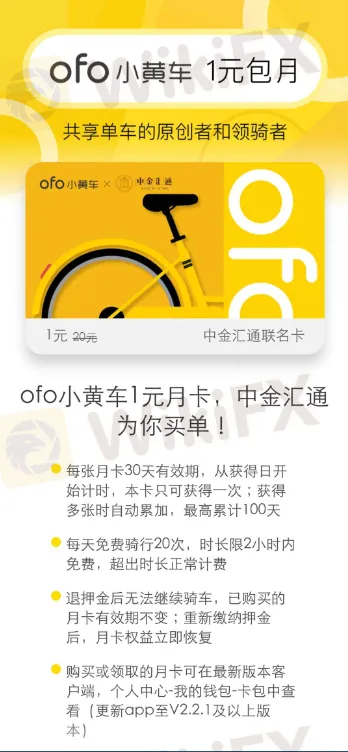 摘要:ofo小黄车1元月卡中金汇通为您买单
