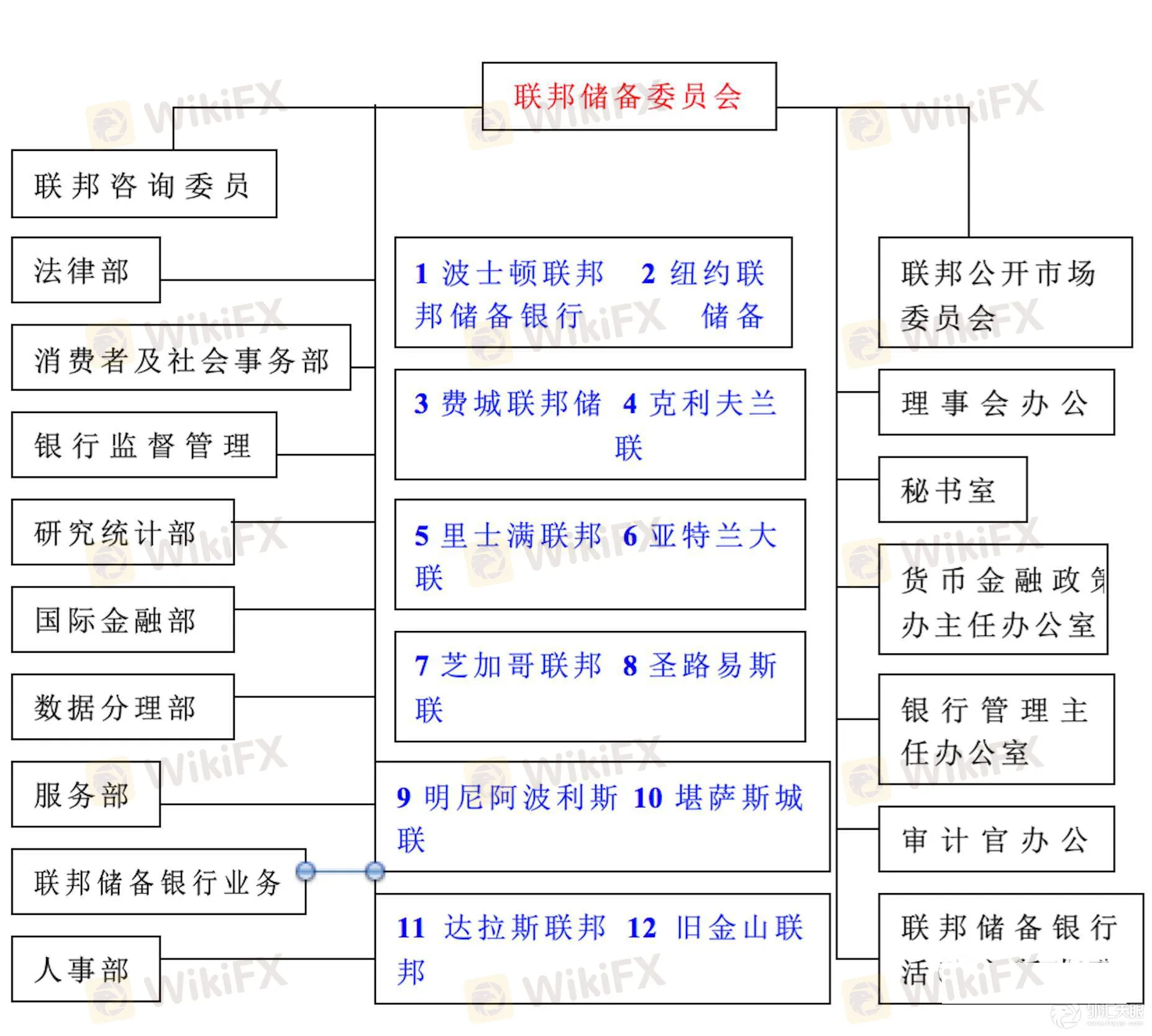 其中,12个联邦储备银行为非营利非政府机构,联邦储备管理委员会和联邦公开市场委员会,属于政府机构,也称为联邦储备局。