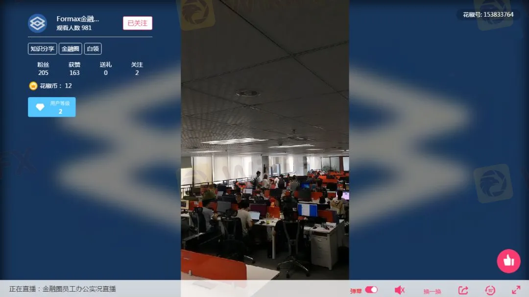 我们深切地理解各位投资者的担忧和心情,对此,近期大家可通过花椒直播搜索花椒号153833764观看金融圈员工办公实况。