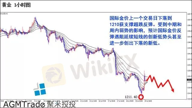 国际金价上一个交易日下落到1210获支撑超跌反弹。当前黄金反弹到55均线附近遇阻反弹势头放缓。日内关注黄金围绕反弹高点1229.30运行的力度和幅度,预计经过连续的调整黄金将会进一步反弹至1235位置。受到中期和周内弱势的影响,预计国际金价反弹遇阻延续短线的创新低势头甚至进一步创出下落的新低。