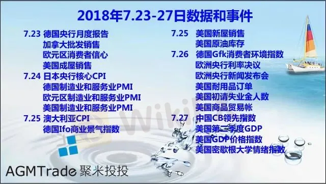 新的一周开始了,本周市场需要重点关注美国第二季度GDP以及欧洲央行利率决议。在美联储下半年加息两次的预期升温,美国总统特朗普突然发表对美元强势的担忧,甚至直言并不乐见美联储升息。也因此第二季度美国GDP数据的表现更受关注。另外,欧洲央行的利率决议在本周恐难有太多改变:一方面,欧洲的通胀并不支持该央行的政策马上紧缩;另一方面,欧洲各国经济增长良莠不齐、美国对欧盟的关税政策以及对从伊朗进口石油的相关制裁举措都会对欧洲的经济进程形成影响,在内忧和外患双重作用之下,欧洲央行本月的货币政策难有大的改变。欧盟委员会主席容克访美期间是否能够解决当前的贸易争端问题周内也需要进一步关注。