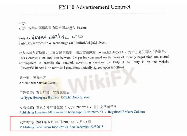 该表达的文字部份已表达清楚。今天,我们为公众做一次跟进,用截图来说明一下FX110是如何一步步单方面撕毁广告合同;如何删除Amana在FX110官网上的FCA监管信息,以双重标准来宣传它那所谓公平公正的监管查询与评级系统。一家对合作的经纪商都没有信用可言的媒体,如何有公信力为广大投资者服务!愿广大经纪商擦亮眼睛,认清其虚伪的真面目。