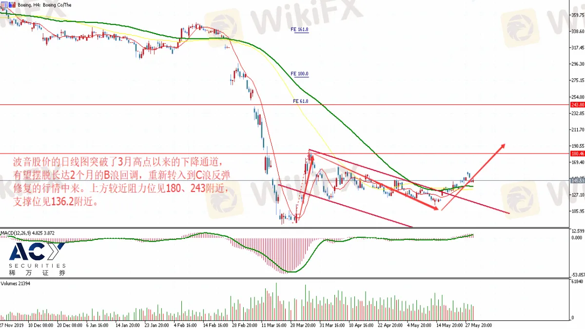 3、下行通道成功突破,波音或开启C浪反弹修复行情
