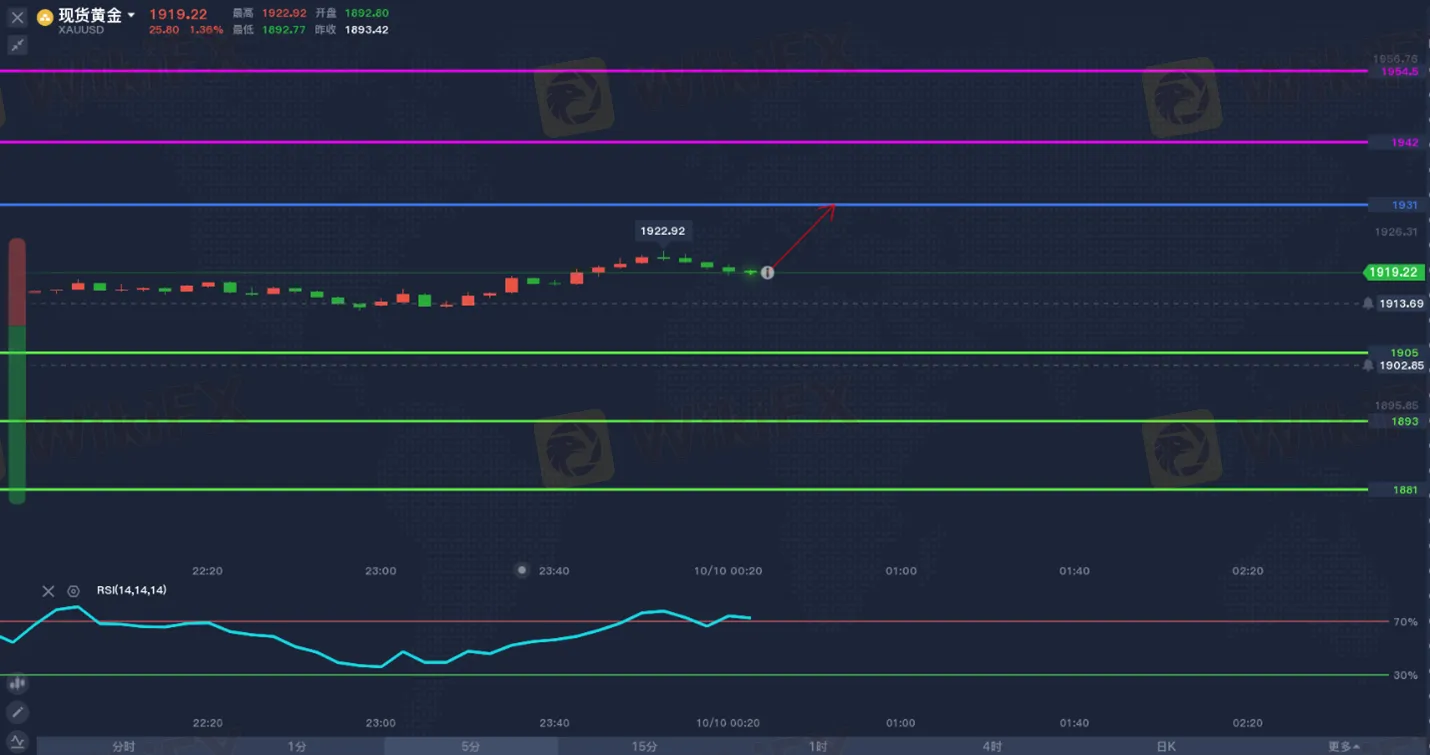 技术面上,TMGM分析师表示,黄金处在一个不错的位置,买盘将金价托至1900美元上方,但很难进一步上涨。AOI指标显示现货黄金即时趋势维持向上,有较强的动能。关键转折点在1905,在此之上看涨,第一阻力位为1931,然后为1942.00。若跌破1905,则目标价位定在1893.00 ,然后为1881.00。