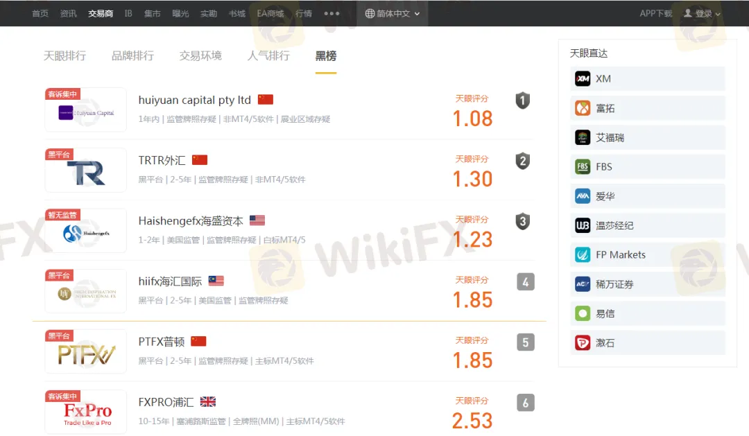 作为曝光文章的小编,除了关注官方客服接收到的平台客诉,还会注意到外汇天眼主页中的黑平台排行。