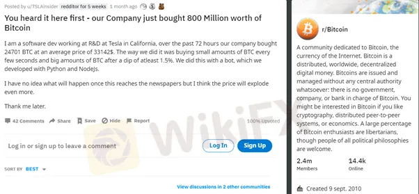 A member of the Reddit community posing as a developer at Tesla revealed a month ago that the Californian company had started buying bitcoin. “I have no idea what will happen once this reaches the newspapers but I think the price will explode even more,” he said in a message that is still visible.