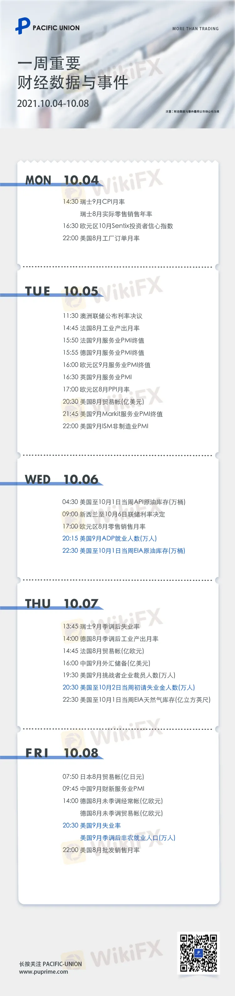 Pacific Union 友情提醒各位投资者:此图为下一周重要财经数据与事件的时间节点,请您留意,以免错过重要事件延误交易。值得关注的是,下周五将迎来美国非农数据,请您注意市场波动风险。