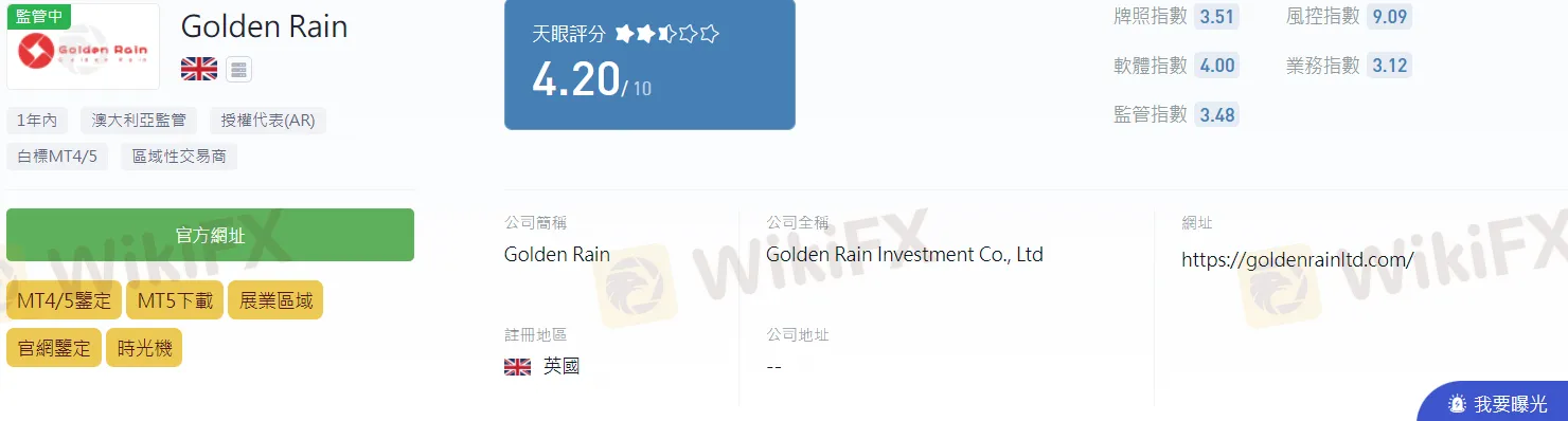 摘要:Golden Rain Investment Co., Ltd會是黑平台嗎?就讓小編帶著您一起看看!