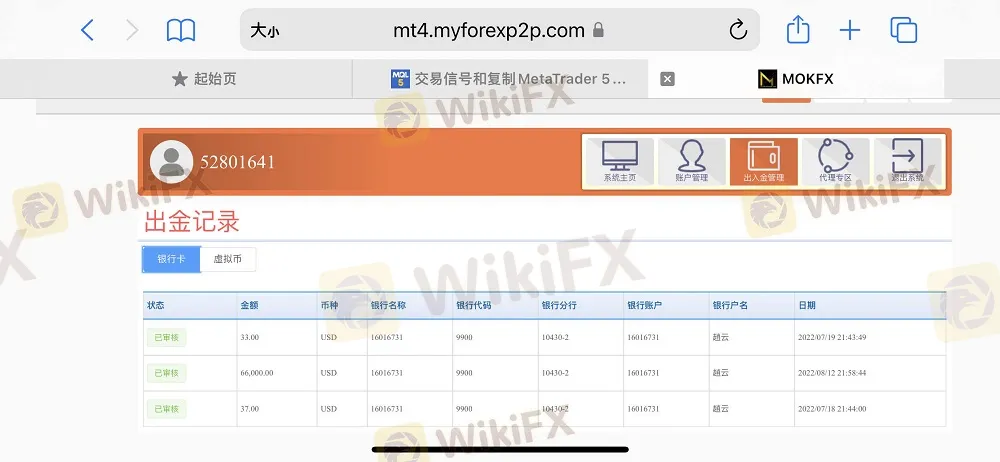 日前一位日本投资者趙云称,自己在MOKFX Global平台提交出金申请后,一直停留在审核通过阶段,过去一个月多月了始终无法出金。