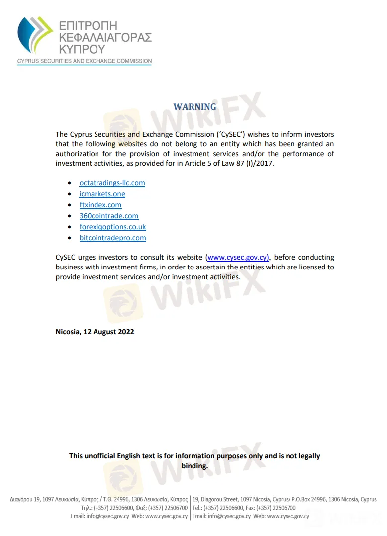 摘要:八月份,塞浦路斯证券交易委员会(CySEC)发布更新了一则关于不受监管实体的警告!