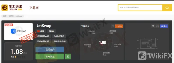 听了祁先生的投诉后,天眼君第一时间对该平台展开了调查。果不其然,JetSwap没有提供任何有效监管信息,也就意味着其根本不受任何监管,有无监管是一家外汇交易商对客户最基本的保障,显然JetSwap是一家名副其实的黑平台杀猪盘。