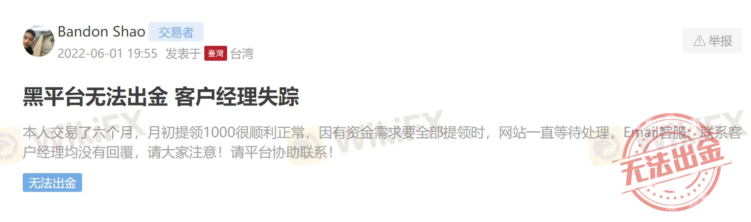 在上述案例中,之所以Bandon Shao开始能够顺利小额出金,是诺盈平台利用小额出金的事实迷惑用户,以便给人制造一种正规安全的假象,进而诱使受害者向平台转入更多资金。当Bandon Shao需要全部提取账户资金时,诺盈平台无法出金,其客服及总部简单搪塞后,便再无音讯则揭开了黑平台的面纱。因此,出金永远是不可能了,骗子还会想尽办法榨干受害者的资金,冻结账户仅仅是其中一个手段。