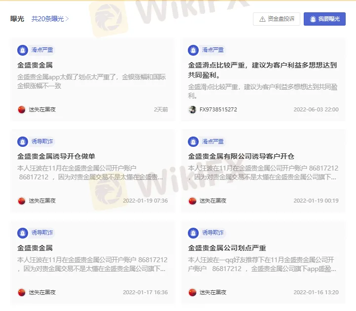 近期,又有多位投资者在外汇天眼的曝光区内投诉金盛贵金属滑点严重、诱导欺诈等问题!截止目前已经有20多条关于金盛贵金属的曝光贴了!