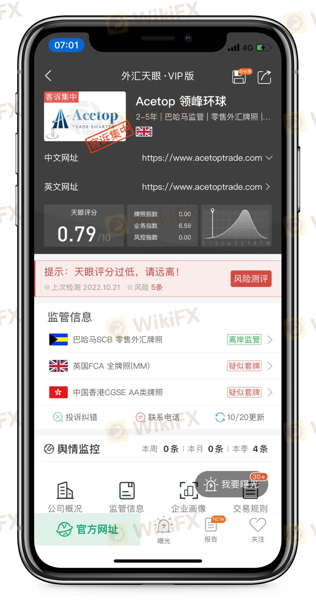 看一下他们家相关的曝光,可以发现最近的一段时间有集中爆出的无法出金和跑路投诉,这个时候就要谨慎起来了。近3个月内外汇天眼收到对该交易商的投诉曝光已达到86条,请注意风险,谨防受害!