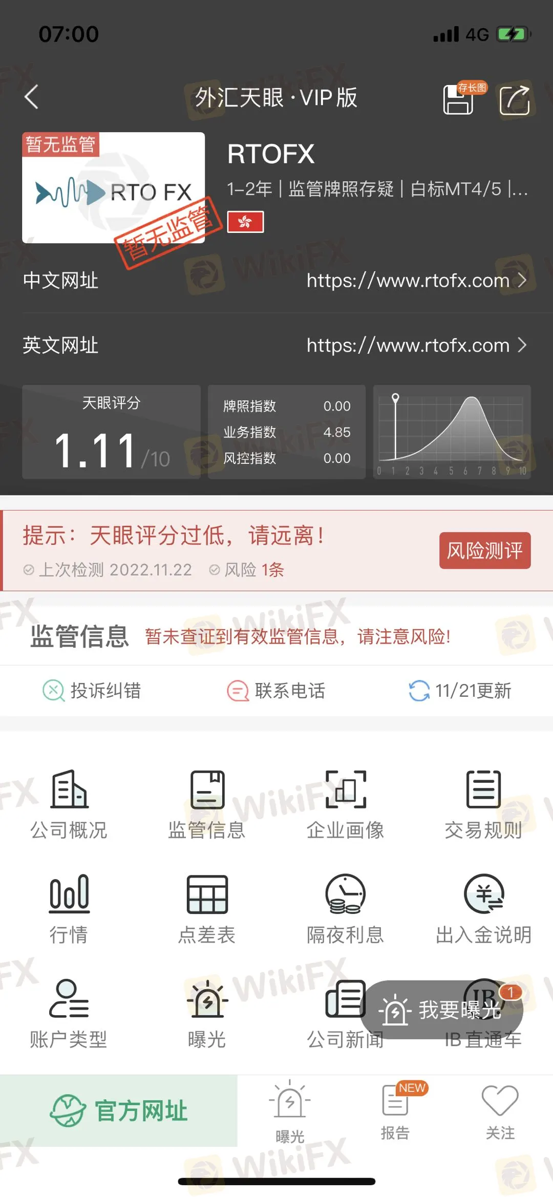 正所谓“投资千万条,出金第一条,平台不规范,被骗两行泪。”外汇天眼也在此提醒投资者在做外汇交易之前,一定要审核清楚外汇平台的资质以及官网信息,以防上当受骗。