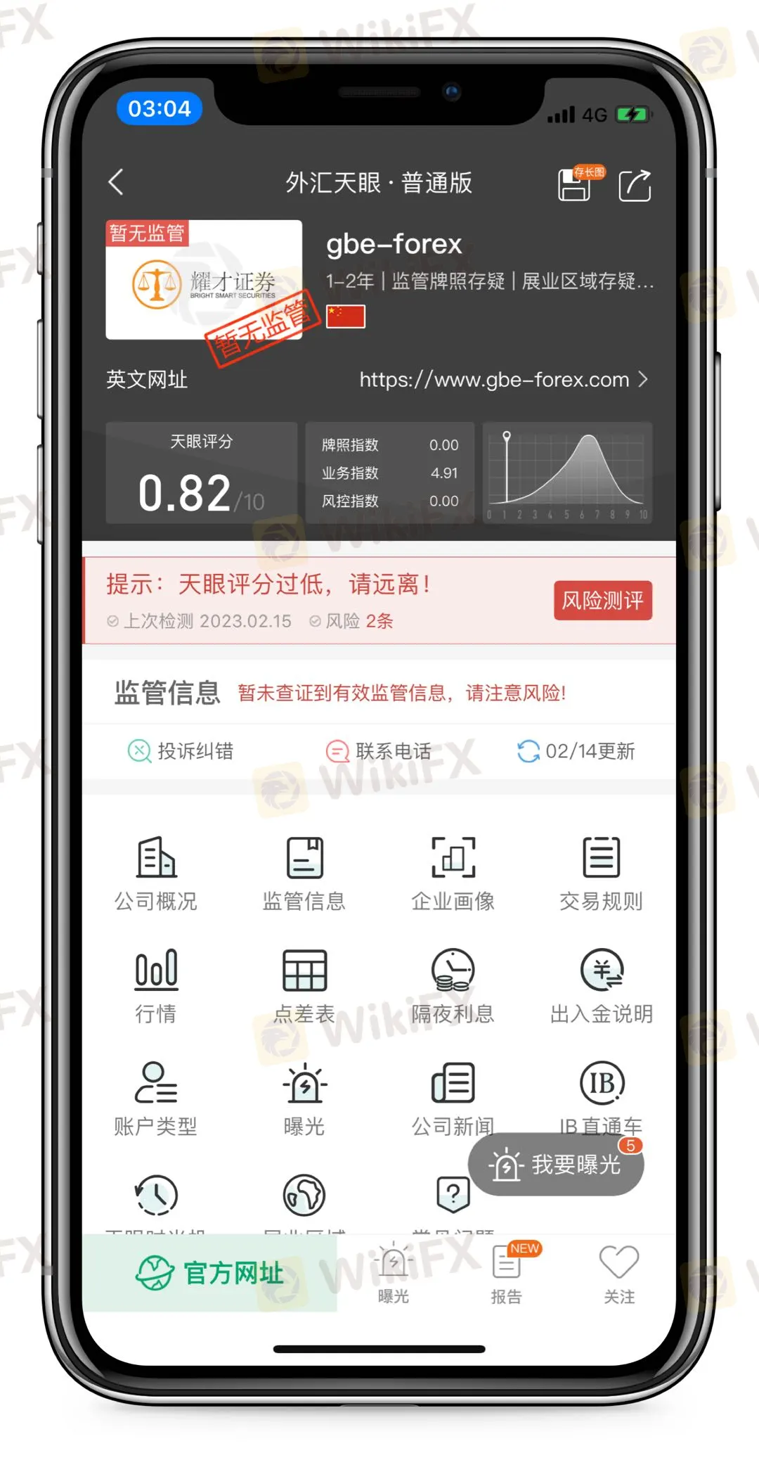 其实有很多方法可以避免出现这样的情况,在做外汇和其他交易之前,可以在我们外汇天眼上面先检索一下该平台是否可靠,就gbe-forex平台举例,在天眼首页搜索gbe-forex可以得出如下结果