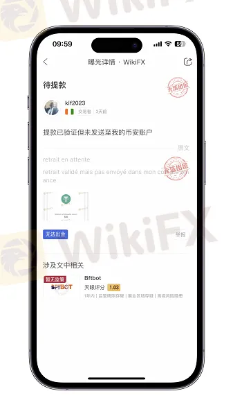摘要:日前,一位投资者向WikiFX投诉Bftbot平台不能提款。