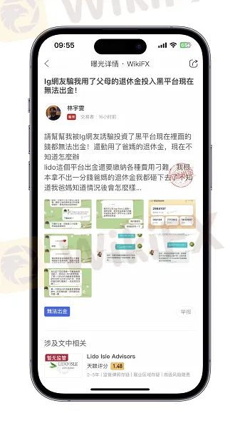 在WikiFX评分系统中,WikiFX会对于交易商的牌照指数、业务指数、风控指数、软件指数和监管指数五大方面进行综合评分。得分越高越值得信赖,越低越需要提高警惕!而Lido Isle Advisors最终总分仅为1.48分(满分10分)。很显然,Lido Isle Advisors并不靠谱!