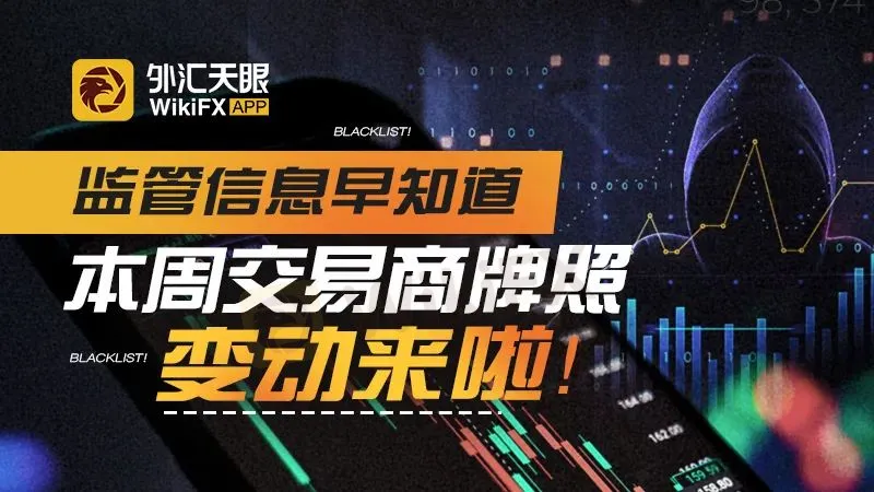 监管信息早知道!外汇天眼将每周定期公布监管牌照状态发生变化的交易商,以供投资者参考,规避投资风险。若平台的天眼评分过高,在外汇天眼评分高不代表平台没问题,建议投资者谨慎选择!