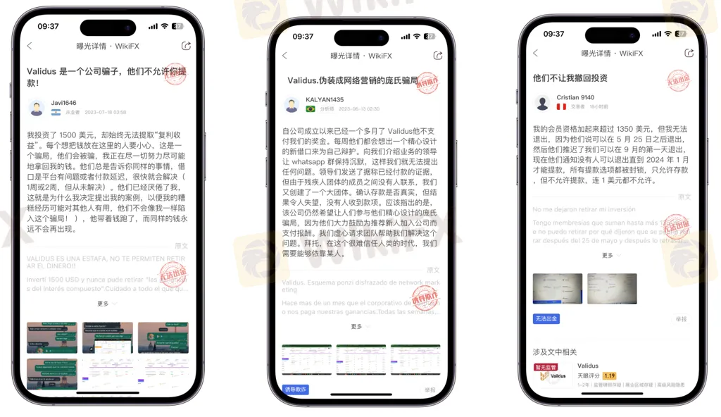 近期,多位投资者向WikiFX投诉曝光Validus平台无法出金。