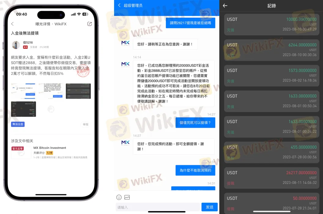日前,一位名为“JIA5216”的投资者就不幸陷入沉没成本骗局。JIA5216表示自己通过网友得知“MX Bitcoin Investment”平台又充值赠金活动,充值20000USDT赠送2888USDT。但是当她提现时,却发现无法提现,联系平台客服后了解到需要继续存入20000USDT才能解锁,如果不能在限期内解锁将每日扣除5%的滞纳金。