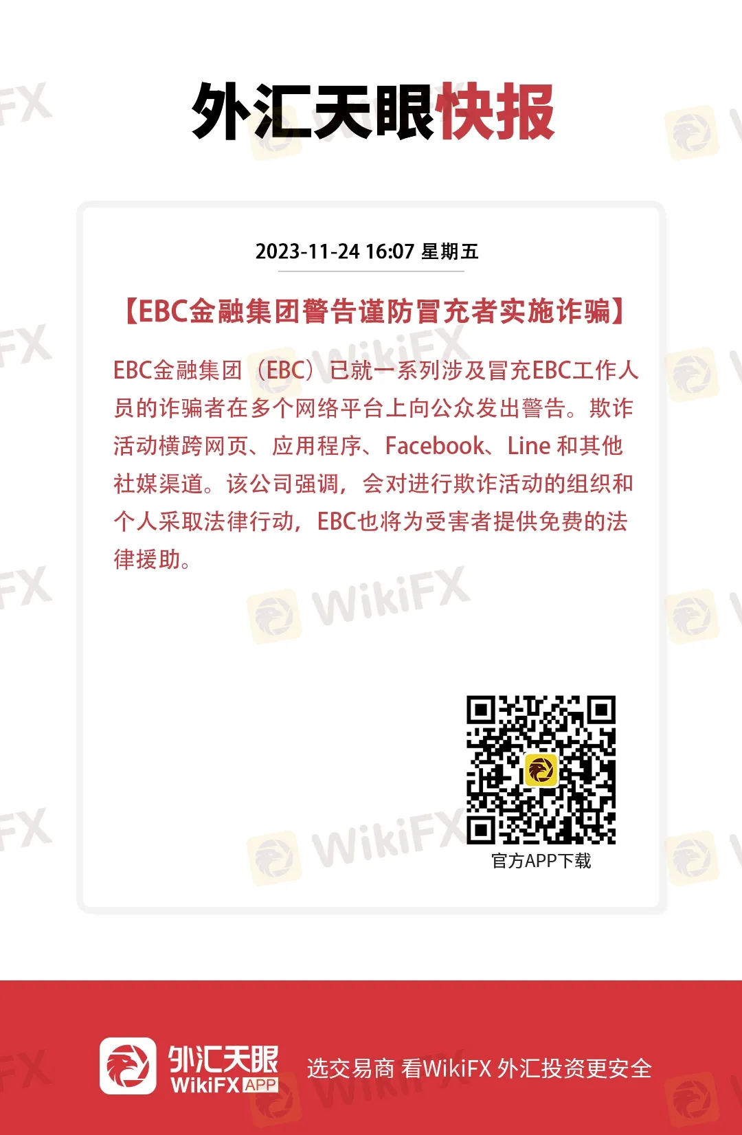 EBC金融集团警告谨防冒充者实施诈骗