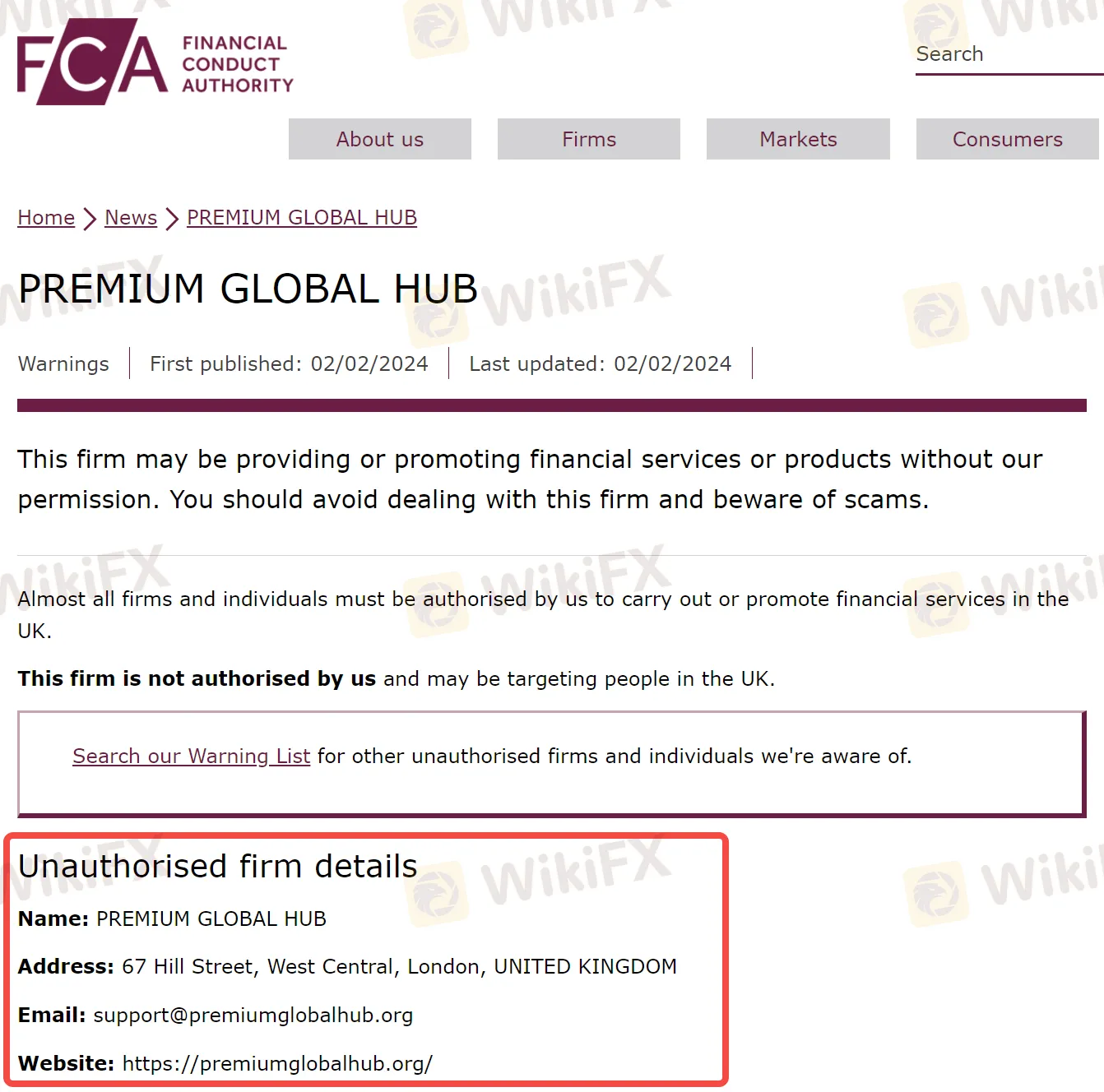 FCA认为PREMIUM GLOBAL HUB存在欺诈投资者、非法集资等严重违法行为的可能。并警告投资者不要与该公司进行任何交易或投资,如果一旦遭受资金损失,将无法使用金融申诉专员服务或受到金融服务补偿计划 (FSCS) 的保护。