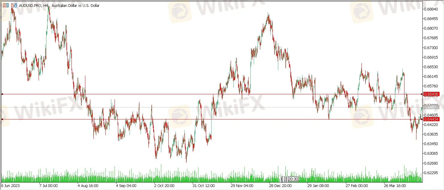 技术面上,4小时线图上看,澳元兑美元的下一个阻力位是0.65436附近,支撑位是0.64434附近。