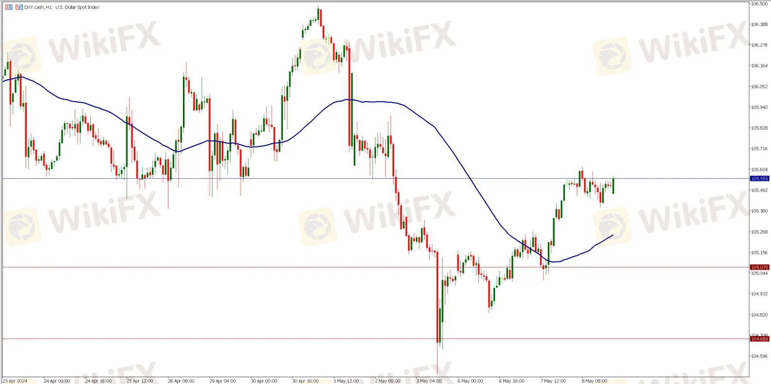 美联储官员表示,美国经济需要降温,其对通胀回归至美联储2%的目标意义重大。美元指数(DXY)在上周五美国非农数据公布后,一度跌至104.5,是4月10日以来的新低,本周开始反弹连续两根日线阳烛,重新站上105.5。或许今晚的小非农数据将会给美元指数走向指明方向。