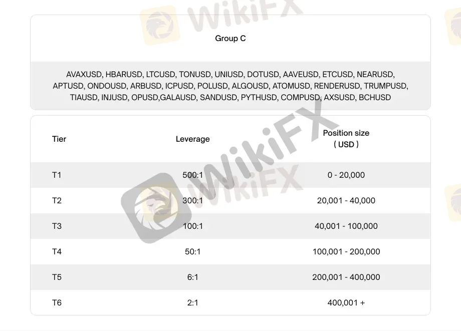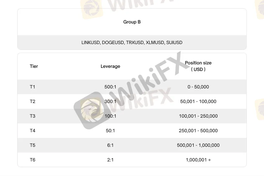 根据持仓规模及所交易的加密货币 CFD 产品,共有六个不同的级别。