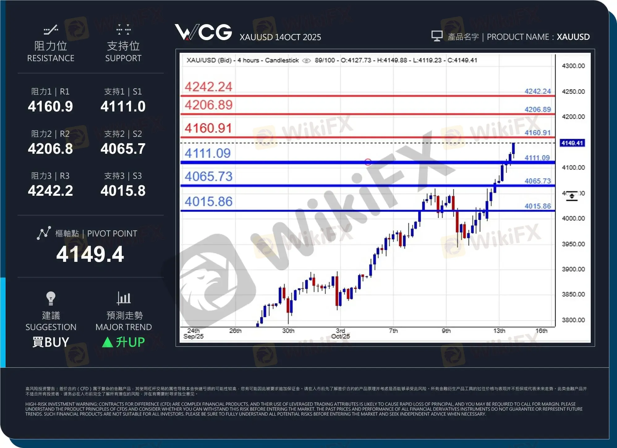 WCG Markets2025年10月14日黄金市况分析