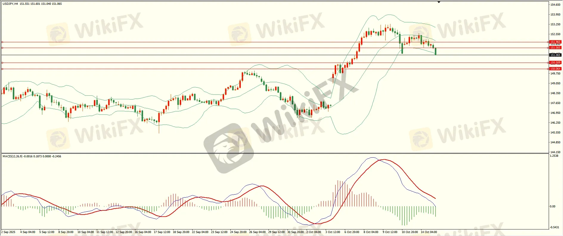 美日昨日亚市开盘后承压下行,日线报收中阴线,上方阻力犹存,短线有延续调整迹象,从4H来看,布林中轨拐头向下,MACD零轴附近运行,日内上方首要阻力151.55,第二阻力151.95,下方支撑150.50,150.00,保持在第一阻力下方短线有望测试第一支撑。