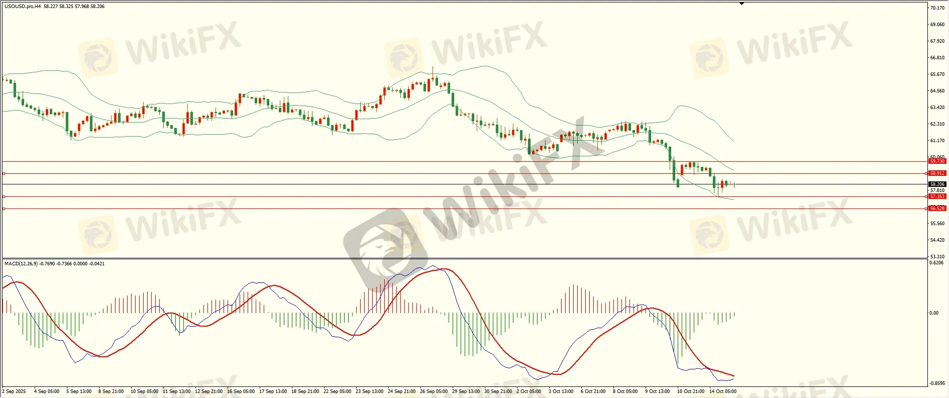 原油昨日亚市开盘后延续走低,至收盘回落至第二支撑附近略有缓和,日线报收中阴线,收盘位置触及前支撑,失守后方可打开下行空间,从4H来看,布林中轨偏下,MACD零轴下方运行,日内上方首要阻力58.90,第二阻力59.70,下方支撑57.35,56.50,保持在第一阻力下方短线有望测试第一支撑。