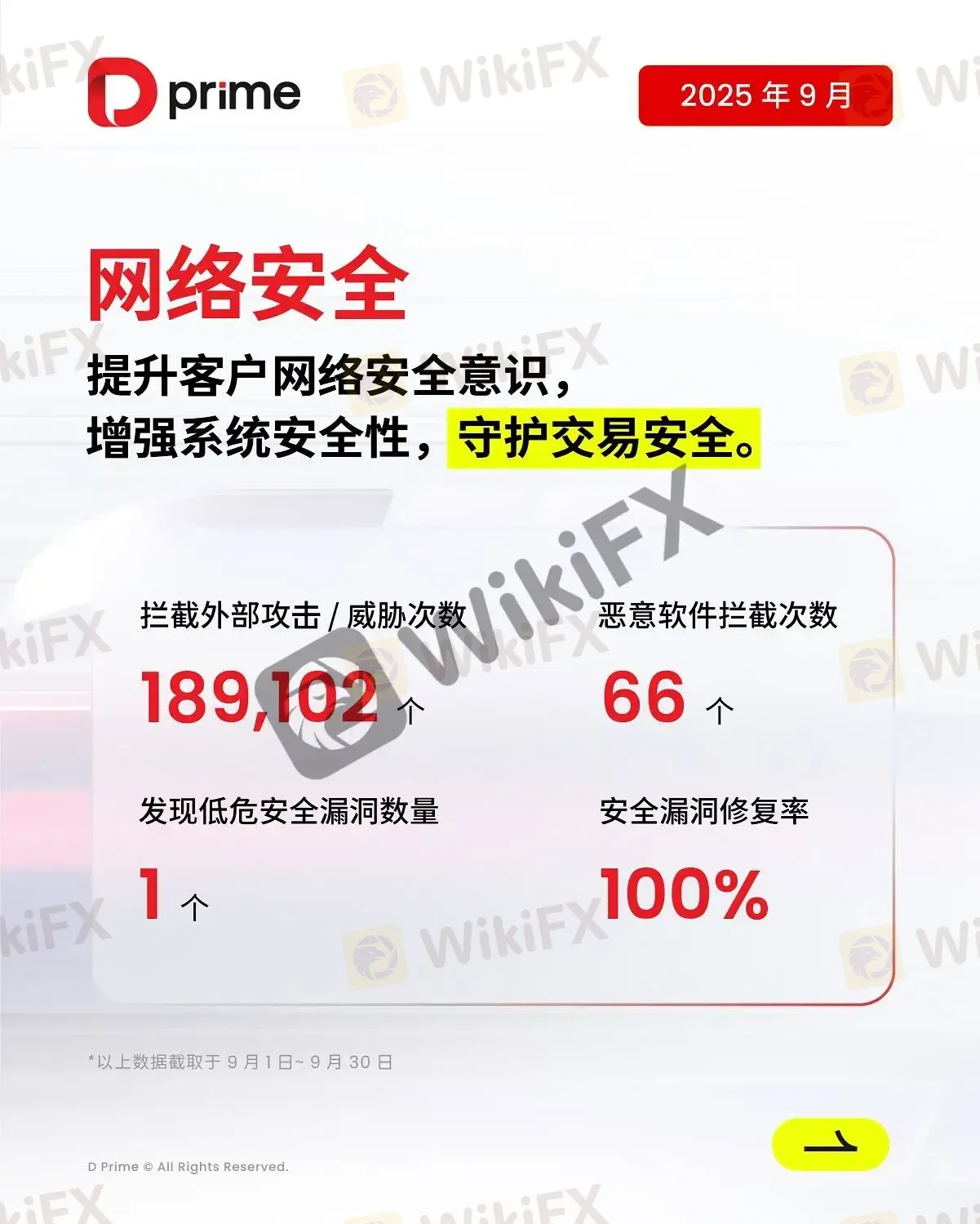 摘要:为持续践行安全透明的承诺,D Prime 正式推出《安全月报》。这不仅是一次总结,更是一项持续的承诺。我们将每月定期与您分享平台的在网络防护、资金安全、系统稳健运营等方面的数据表现,让信任建立在看得见的数据之上。2025 年 9 月 D Prime 稳健运营数据﹕资金与账户:出入金运行稳定,完成 KYC 数量﹕9,016单笔最高出金金额﹕ USD 621,389网络安全防护:成功拦截外部威胁 18