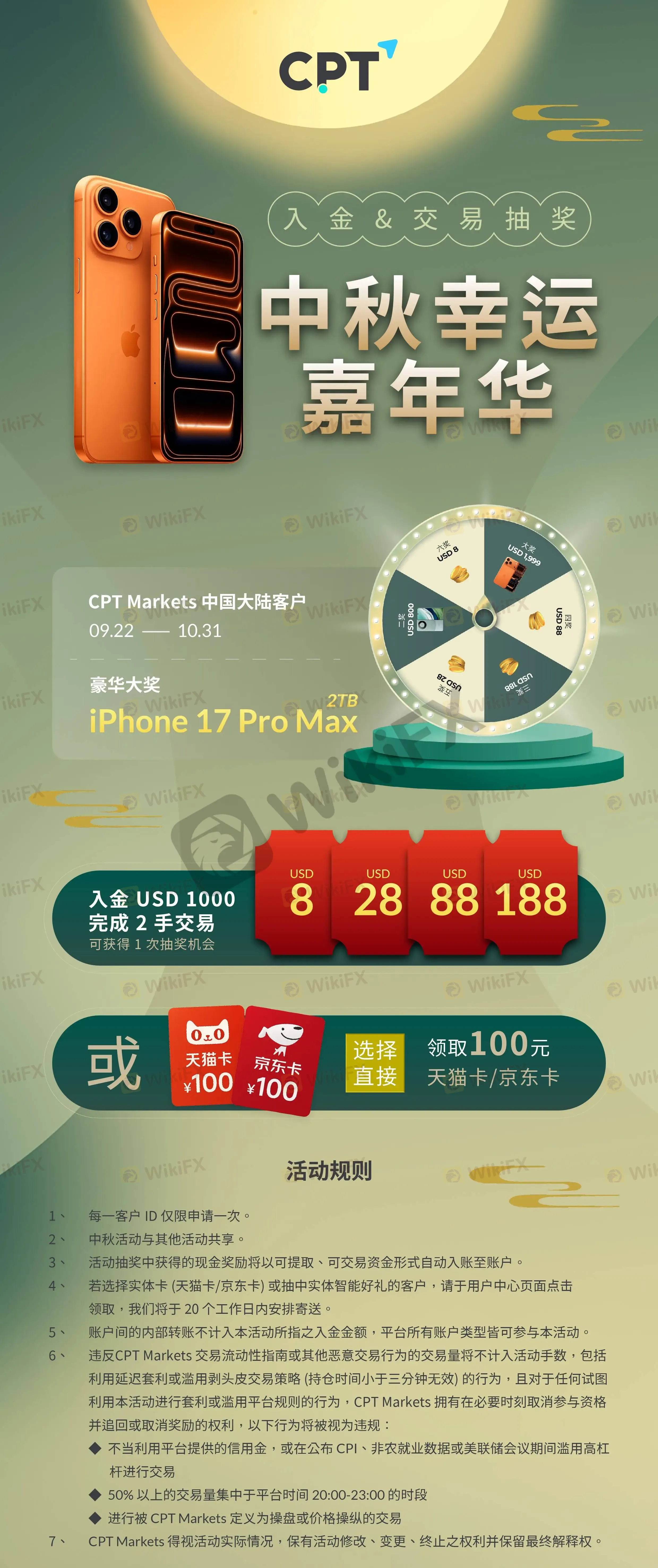 CPT Markets是一家领先的国际金融衍生品及相关服务供货商。公司的宗旨是通过监管和透明的交易价格以及杰出的客户支持服务使投资者进入世界金融市场多年的深耕累积,足够丰富的经验为对全球金融衍生品市场感兴趣的投资人打造一个安全、透明的交易环境。