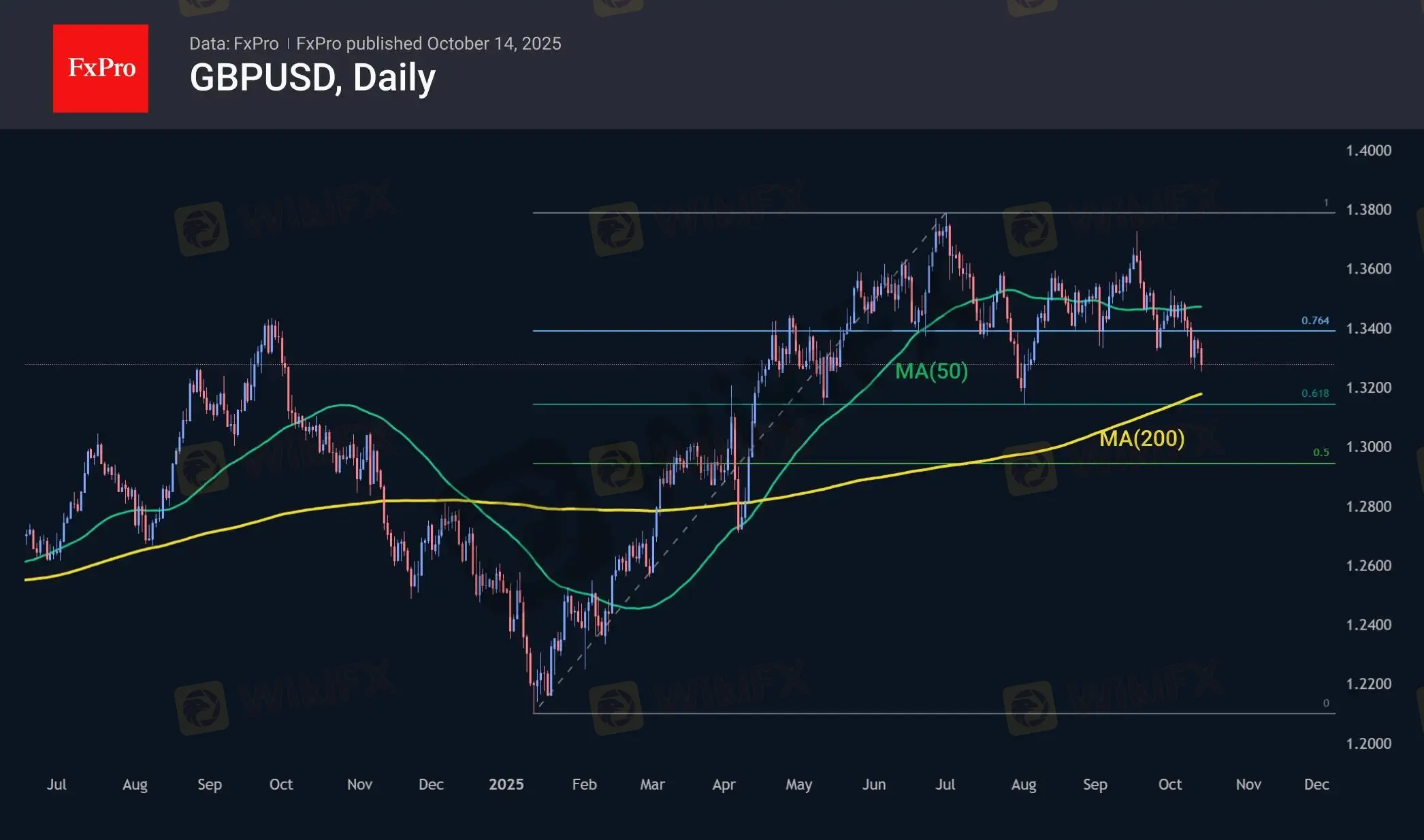 退一步来看,我们可以发现英镑兑美元汇率(GBPUSD)在6月底和9月中旬的高点处形成了双顶形态。