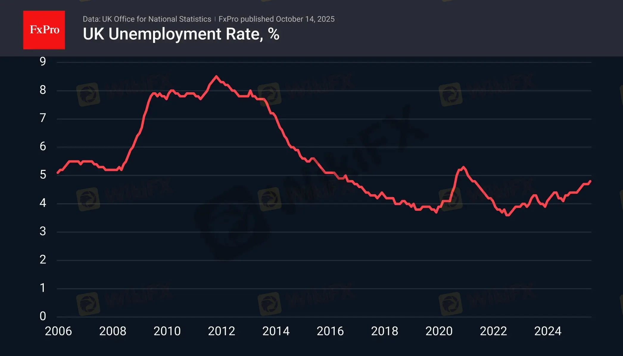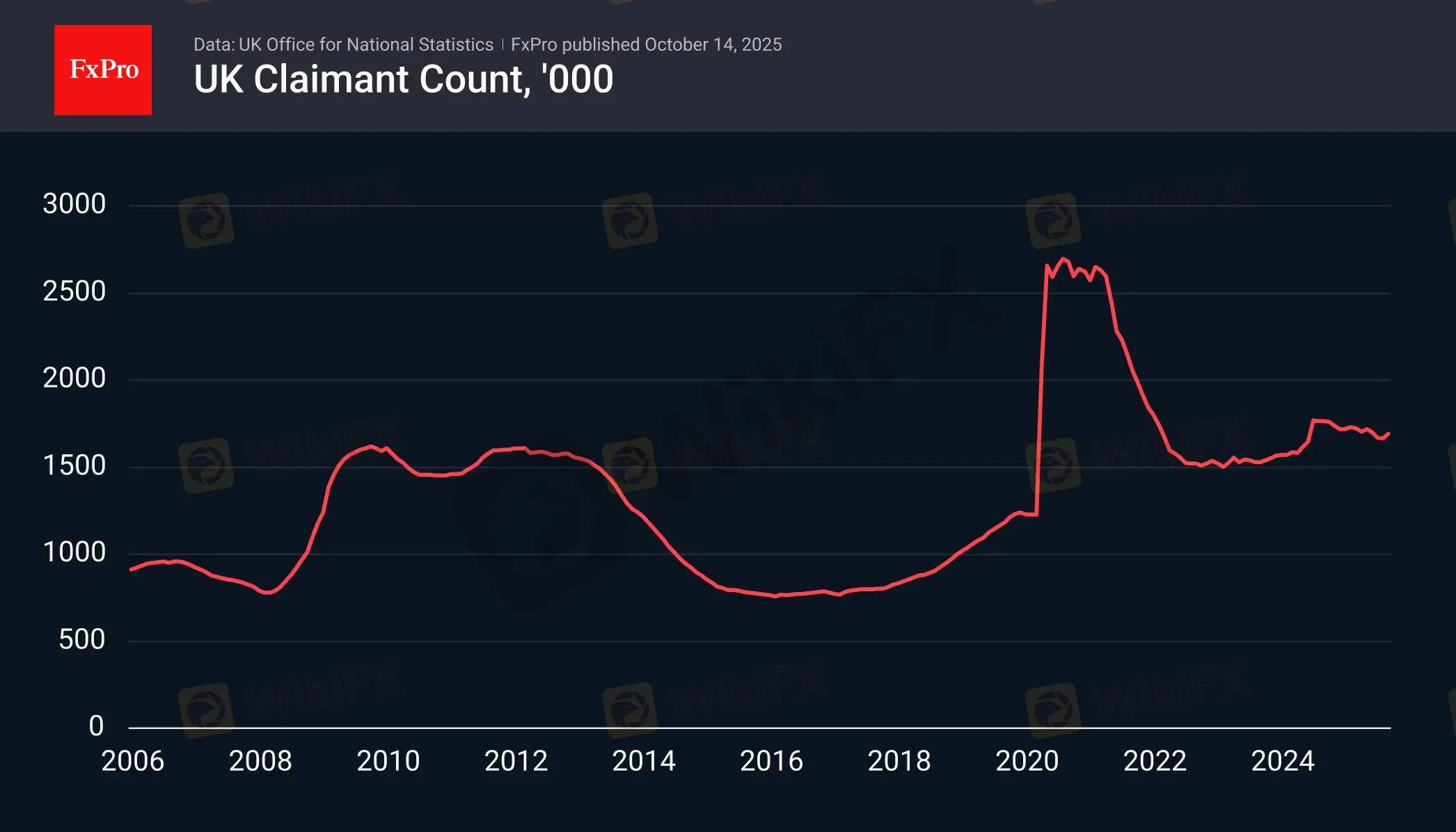 摘要:注:此文章由FxPro高级分析师Alex Kuptsikevich撰写英国失业救济金申请人数在连续三个月下降后,9 月份增加了 2.58 万人,总数达到 5.08 万人,比预期多出了 1 万人。截至 8 月份的三个月失业率上升至 4.8%,为 2021 年 5 月以来的最高水平,而此前的平均预测皆为失业率将保持不变。劳动力市场状况恶化,为英格兰银行采取更为温和的措辞留出了空间。在现代历史中,主要发