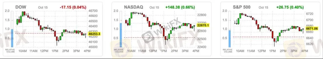 昨日美股开盘时受金融类股亮眼财报的带动高开高走。美国银行(BAC)第三季度营收同比增长 11% 至 281 亿美元,每股收益 1.06 美元,优于市场预期;摩根士丹利(MS)每股收益 2.80 美元,同样远超市场预期,推动股价上涨。