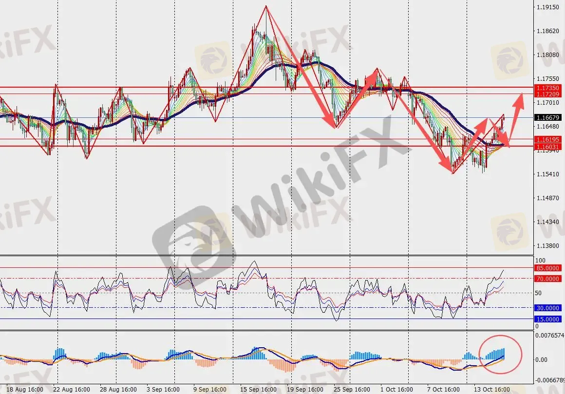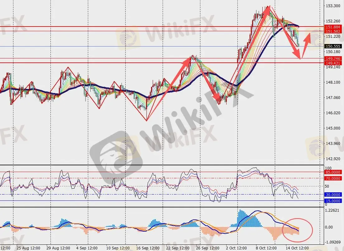 技术面: 欧元兑美元H4级别持续反弹,并在48日多空分界线上方运行。此外,MACD双线与量能柱在零轴附近扩张。法国总理宣布将养老金改革暂停至2027年总统选举后,以避免政府危机。虽然预算审批问题仍未解决但为欧元提供喘息的空间。