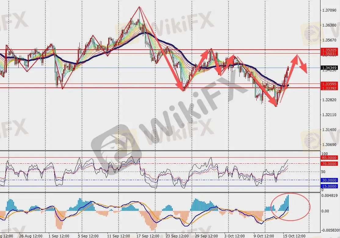 技术面:英镑兑美元H4级别持续反弹,并在48日多空分界线上方运行。此外,MACD双线和量能柱在零轴附近扩张。除疲软的就业市场外,英国债务管理办公室周二发行的2041年到期国债需求同样强劲,认购额超过1280亿英镑。