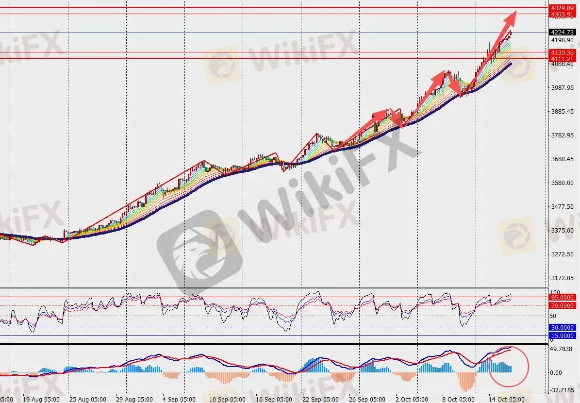 基本面:现货黄金周三延续近期破纪录走势,连续第四个交易日获得买盘支撑。在基本面有利的背景下,金价持续创下历史新高。地缘政治紧张局势持续,贸易摩擦升级,叠加市场对美国政府长期停摆的担忧,共同构筑了支撑这波避险资产涨势的关键因素。此外,市场对美联储的鸽派预期也推动资金持续流入零息黄金资产。
