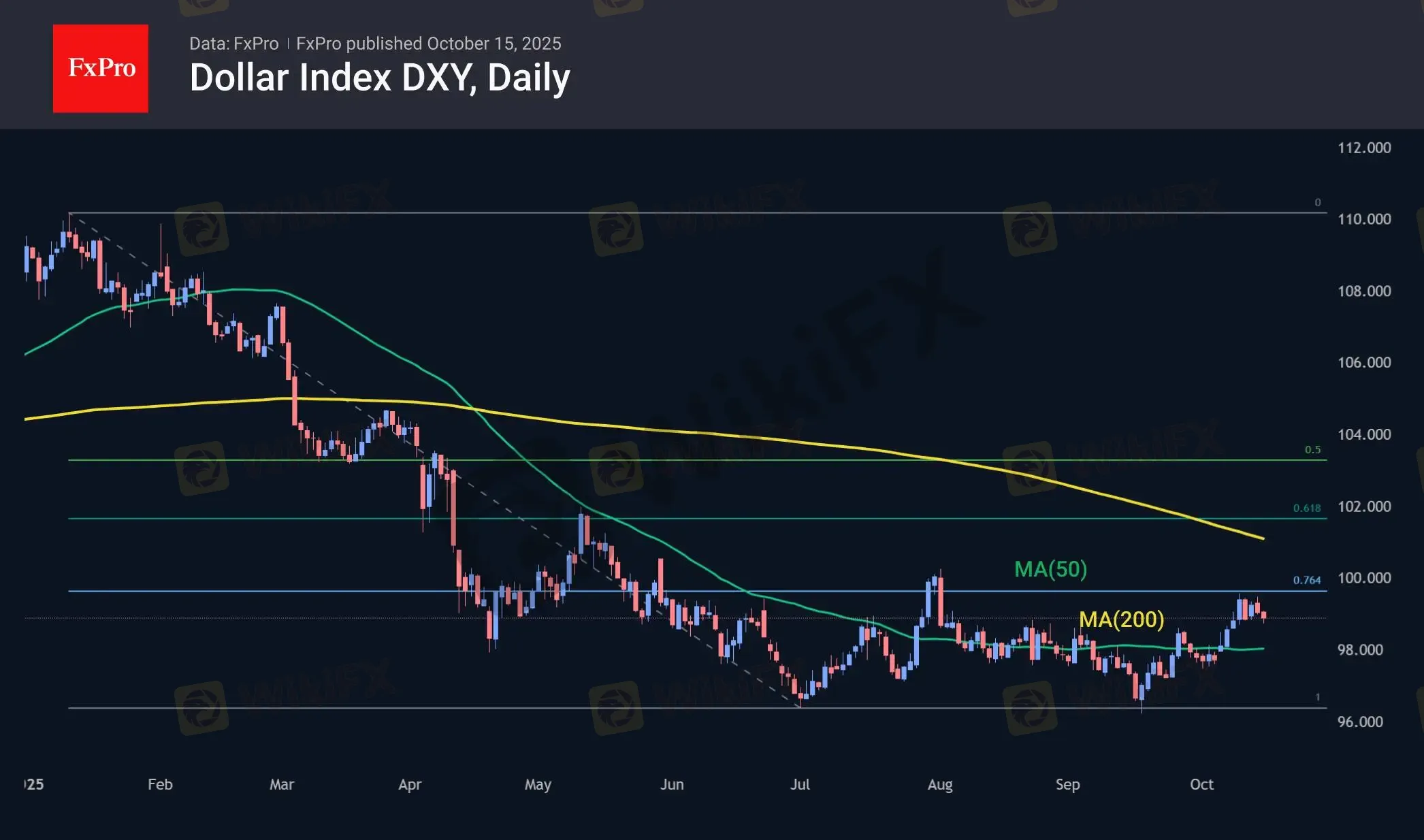 这类声明本不应令市场感到意外,它只是印证了此前已公布的计划。然而,美元指数却对此反应强烈,原因在于其正处于一个阻力区间。美元指数(DXY)在 99.30 附近再次遭遇了相同阻力,该位置在 8 月初曾导致指数回落。同时,这一水平也与美元指数从 1 月高点跌至 7 月初低点过程中76.4% 回撤位的修正区域相重合。