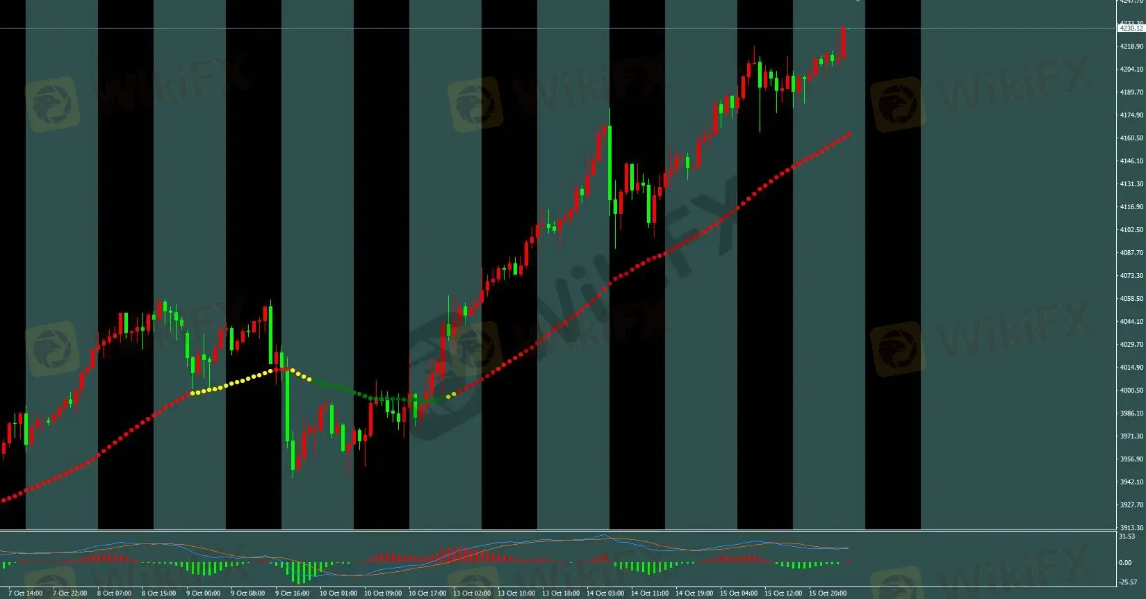 昨日黄金M5模型短线操作成功捕捉第一波多头盈利。亚盘时段价格突破历史新高至4218美元后快速回落至4165企稳回升,美盘震荡上行至4213,全天波幅776点,日线收大阳线。当前多头格局延续,4200形成关键支撑,上方阻力看至4270-4280区间。需警惕上涨途中跳水风险,H1/H4背离状态下建议阻力位轻仓短空。