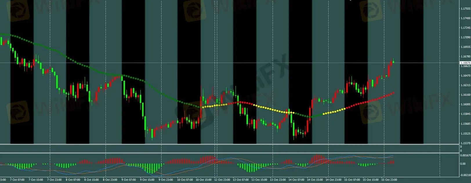 H1趋势线转红,此前1.161多单已止盈。趋势线变绿即平仓,日内参考M5模型。