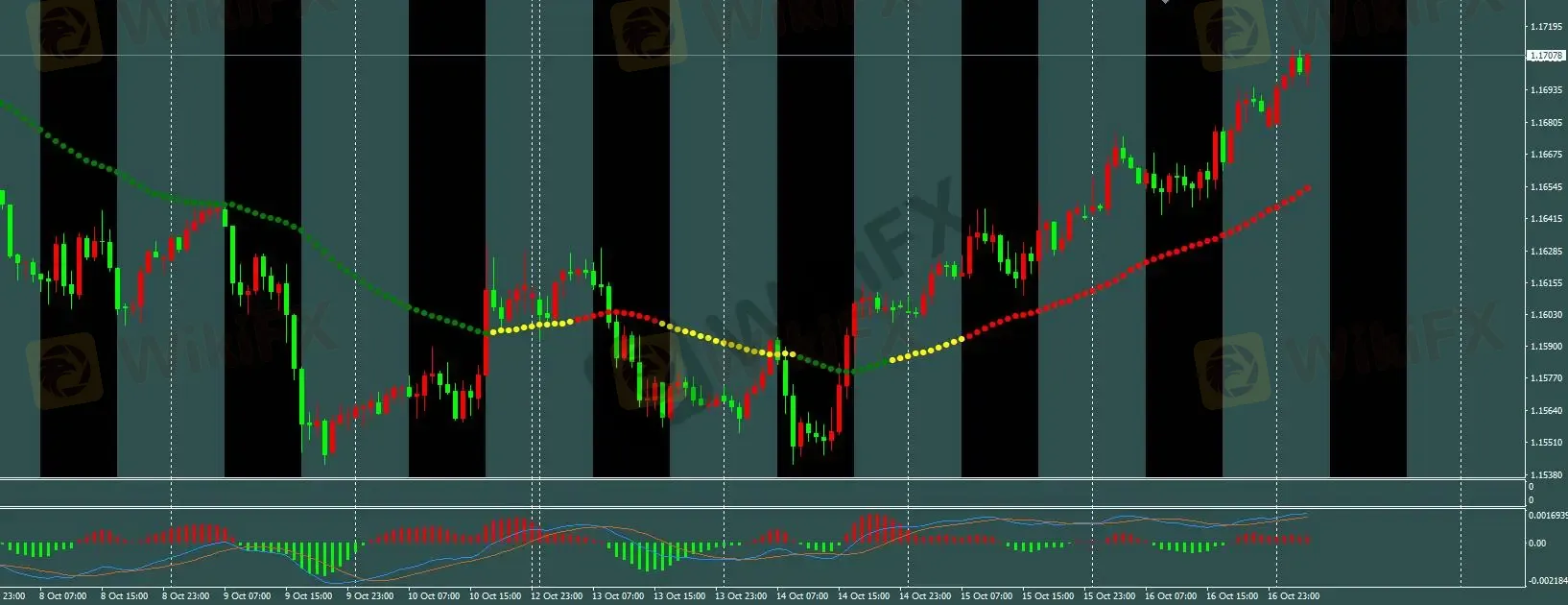 三色线策略:H1趋势线维持红色,此前1.161多单已达目标。今日结合M5模型短线操作。