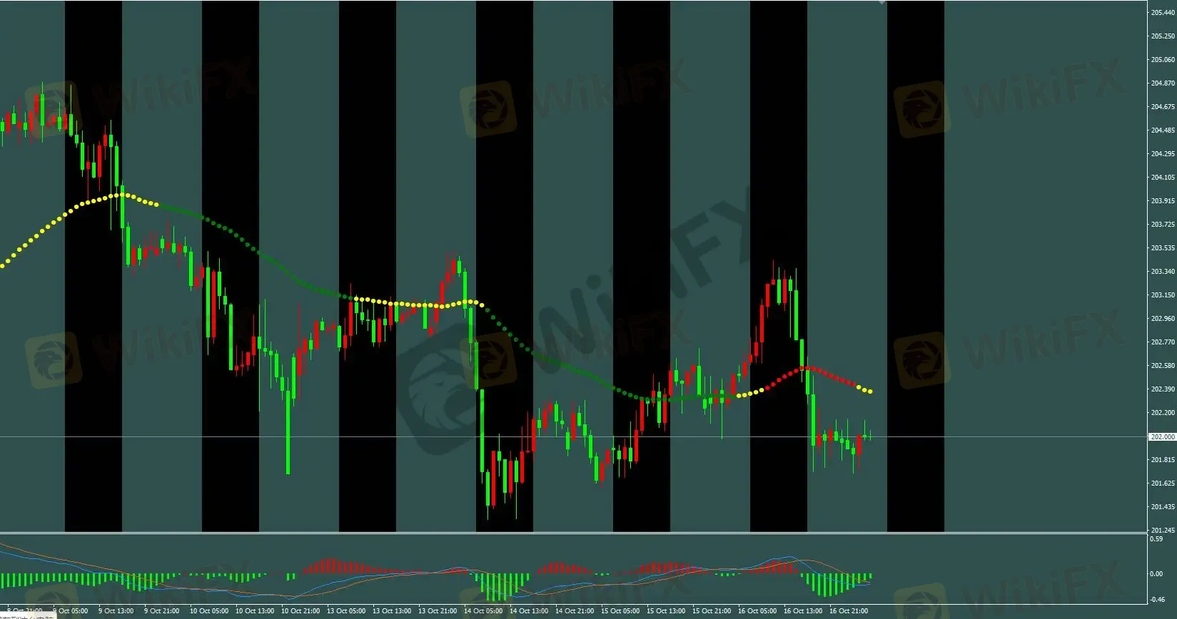 三色线策略:三色线转黄,此前202.5多单已止盈70点。今日结合M5模型操作,或三色线变绿平仓。
