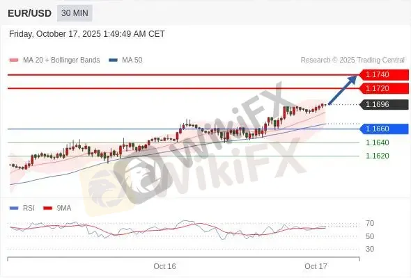 交易策略: 在1.1660之上,看涨,目标价位为1.1720,然后为1.1740。